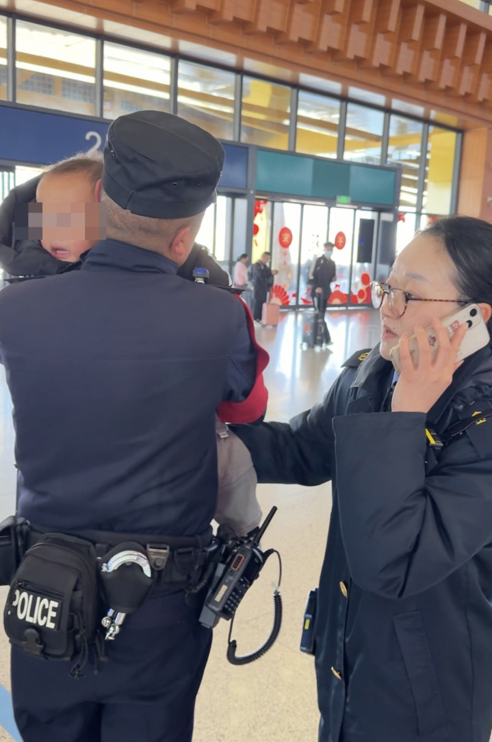 2月3日上午10时30分许,昆明铁路公安局昆明公安处昆明南站派出所的张警官在候车厅外的站前广场巡逻时,发现一名约两岁、尚不会说话的幼童独自大哭。民警判断其很可能与家人走散,便立即上前抱起安抚,并通过对讲机联系同事协助处理。
